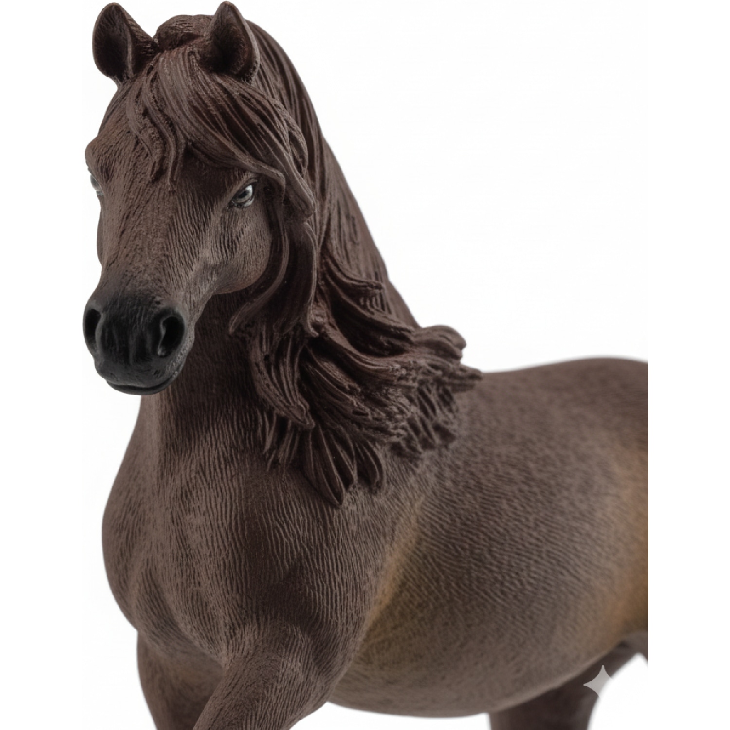 Эта прекрасная андалузская кобыла темно-черного цвета. Она принадлежит к чистокровной меноркской породе, особой разновидности андалузских лошадей, которые обычно белые. Разве она не прекрасна, как она ставит копыта? Особенно поражает ее густая грива. Они элегантно спадают ей на шею, когда она опускает голову. Она уже с нетерпением ждет! Когда же ее наконец оседлают и выведут из конюшни на прогулку верхом? В конце концов, погода просто великолепная!