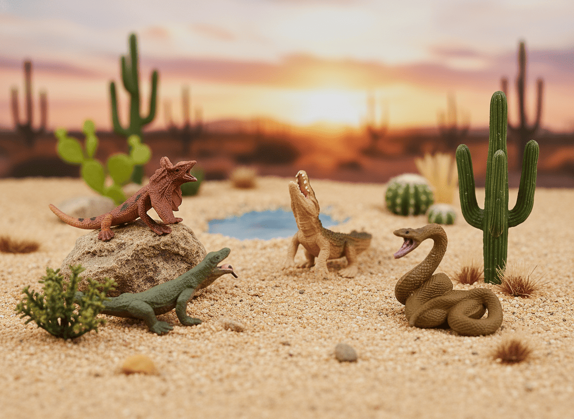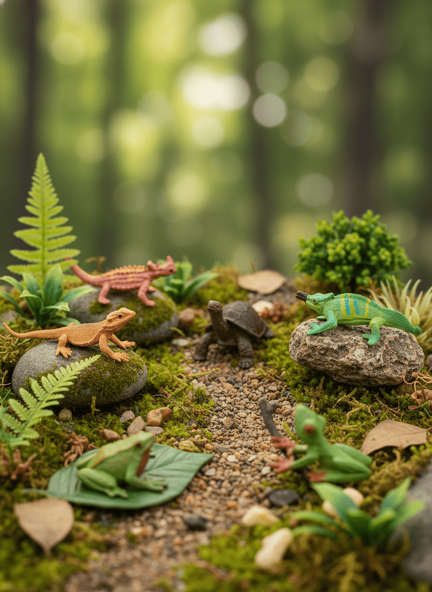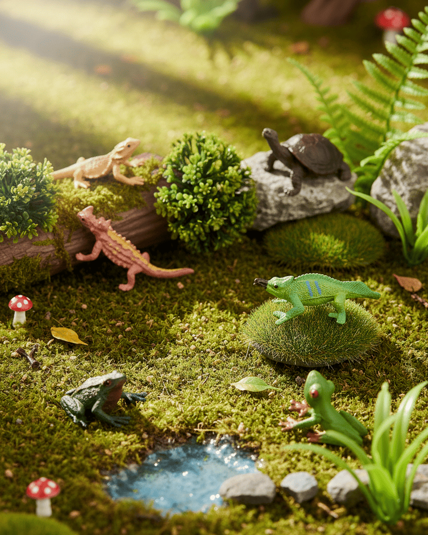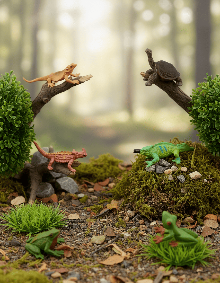 Набор 12 мини-фигурок животных с проектором - рептилии