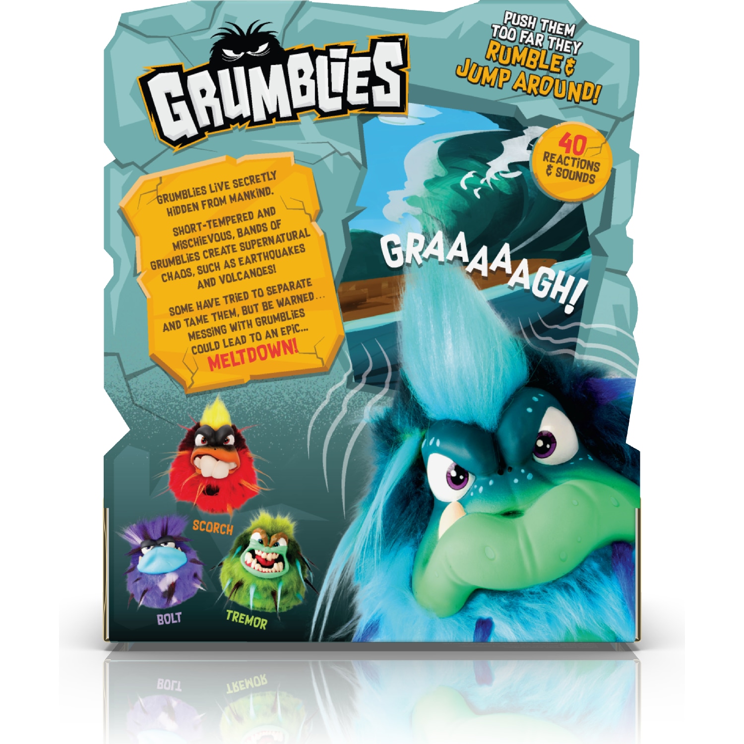 Skyrocket's Grumblies Hydro - это синяя интерактивная аниматронная плюшевая игрушка-монстр 2018 года выпуска, которая становится все более "ворчливой", чем больше в нее тыкают, переворачивают или трясут, что приводит к "краху" и вызывает характерные реакции на водную тематику, например, вызывает приливные волны и ураганы в соответствии с ее вымышленным сюжетом. Игрушка предназначена для развлечения с более чем 40 звуками и реакциями, для полной функциональности ей требуются три батарейки типа АА, а волосы можно менять по форме.