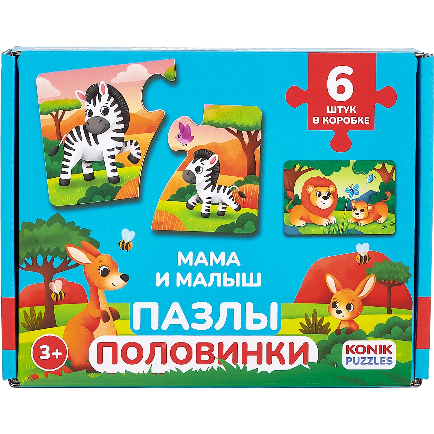 Пазл, марки KONIK PUZZLES. Серия: "Животные". Мама и малыш. 12 деталей. KONIK PUZZLE