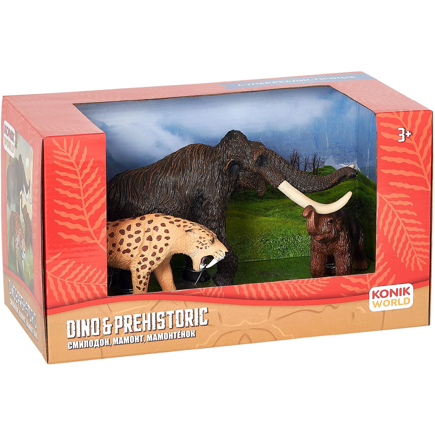 В набор доисторических животных KONIK входят: мамонт, мамонтёнок, смилодон. Красочные фигурки имеют реальное сходство с вымершими животными, приятны на ощупь и безопасны для игр детей. Благодаря яркой окраске игрушек, ребенок концентрирует внимание на определенных деталях, развивает внимание, зрение и мелкую моторику.