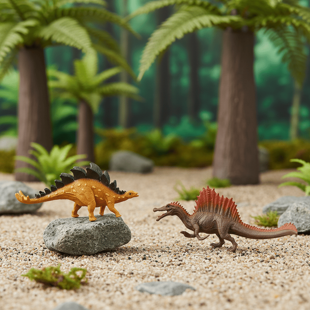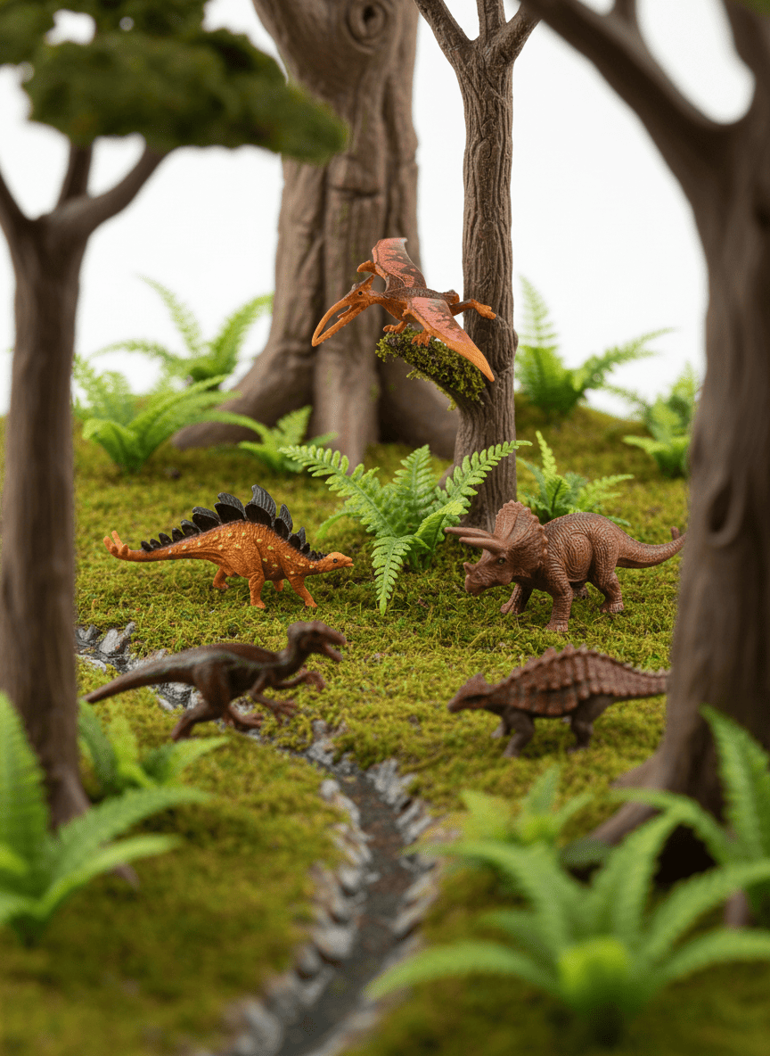 Набор включает 12 фигурок, созданных для развития моторики и творческих навыков у детей разных возрастов. Коллекция предлагает фигурки, идеально подходящие для изучения динозавров в игровой форме. Они отличаются высокой детализацией, что делает их интересными не только детям, но и взрослым, увлекающимся коллекционированием.