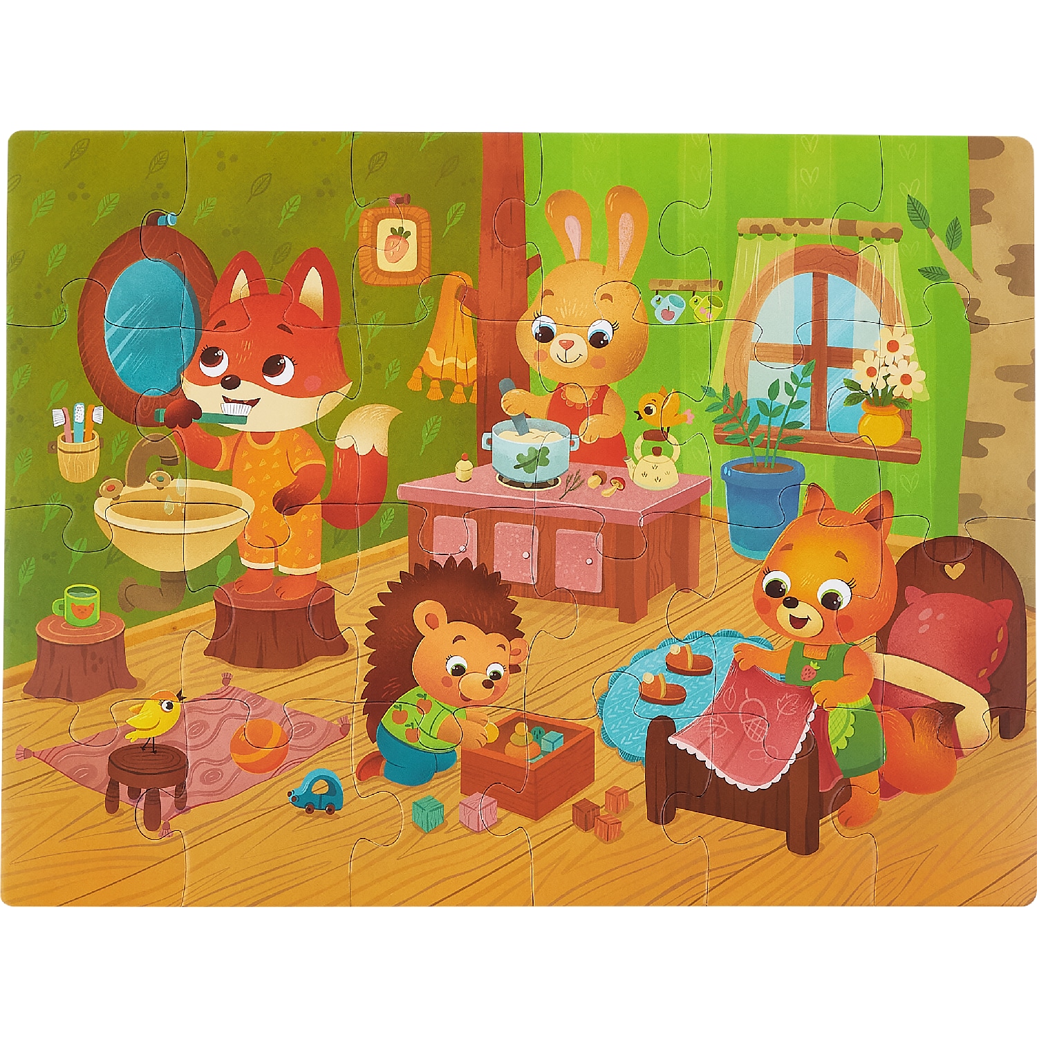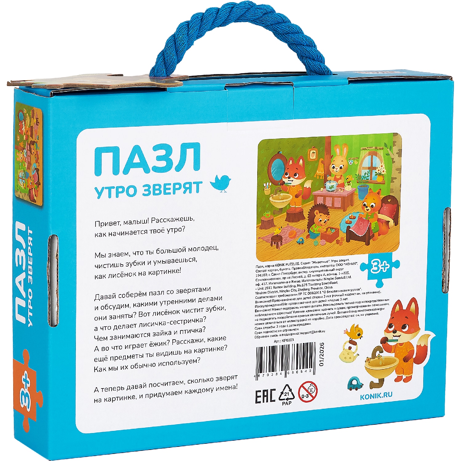 Детские пазлы «Утро зверят» — подарок для мальчика и девочки, сыну или дочке на день рождения или просто так. Подходят для детей от 3 лет. В комплекте: удобный конвертик для хранения деталей, чтобы ничего не потерялось, и памятка по сборке. Крупные детали из плотного картона удобны для маленьких ручек — ребенок легко их соединяет без помощи взрослых. Развивающие пазлы с милыми зверятами тренируют логику, память, внимание, усидчивость и способствуют развитию. Ребенок собирает головоломку, развивая пространственное мышление и координацию движений. Вся семья может присоединиться к настольной игре — совместная сборка объединяет за одним столом. Развивашки знакомят ребенка с лесными животными, расширяют кругозор и помогают узнавать новое. Пазл легко взять с собой в дорогу, в гости или на дачу — детали компактно складываются в коробку. Готовую картинку можно сохранить как украшение детской комнаты или собрать заново. Этот пазл — полезная игра для ребенка 3, 4, 5 лет, радость для родителей и время, проведенное всей семьей.
