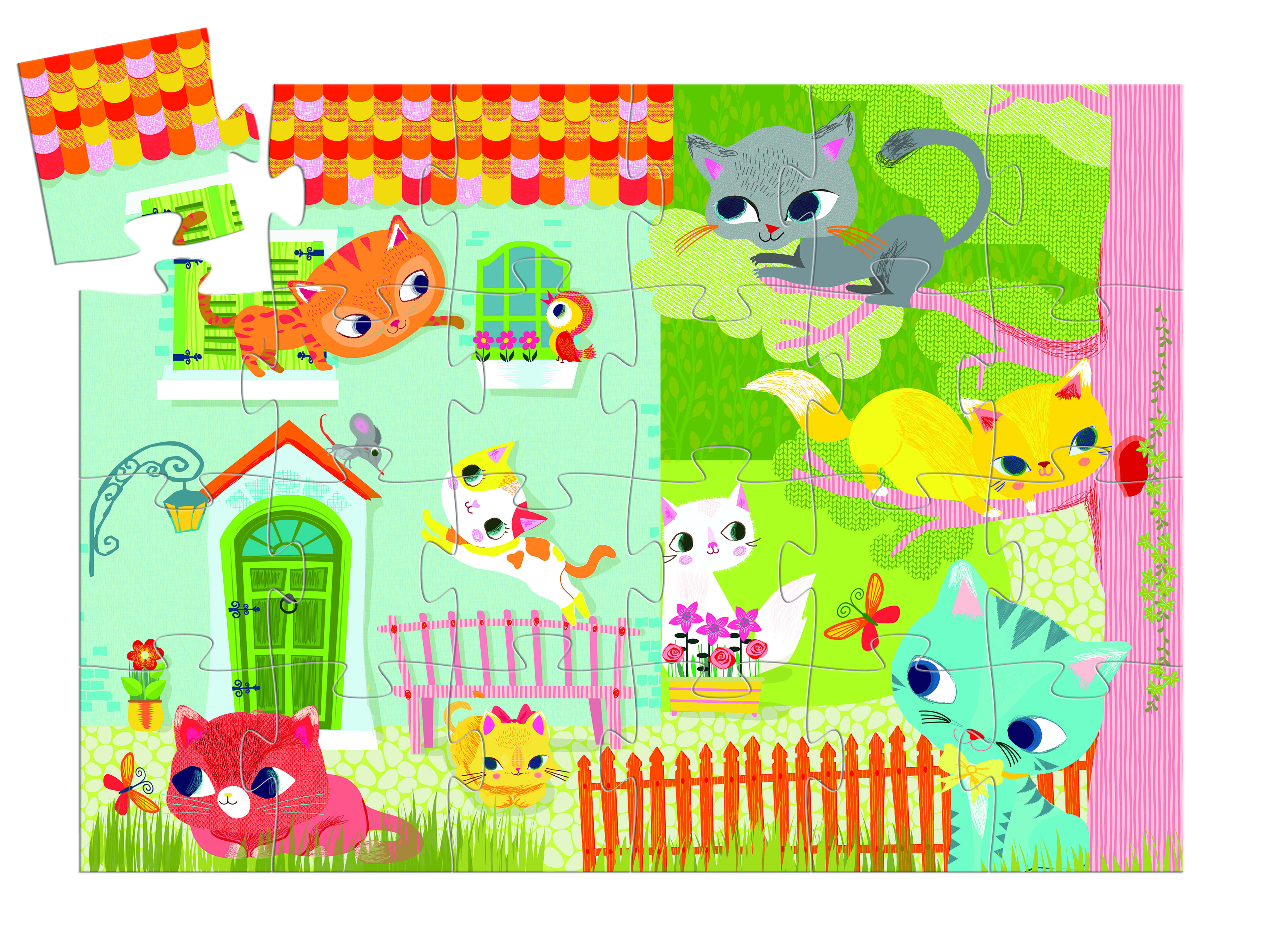Пачат пригласил друзей поиграть. Превосходный пазл из 24 частей в стильной коробке в форме кошки.