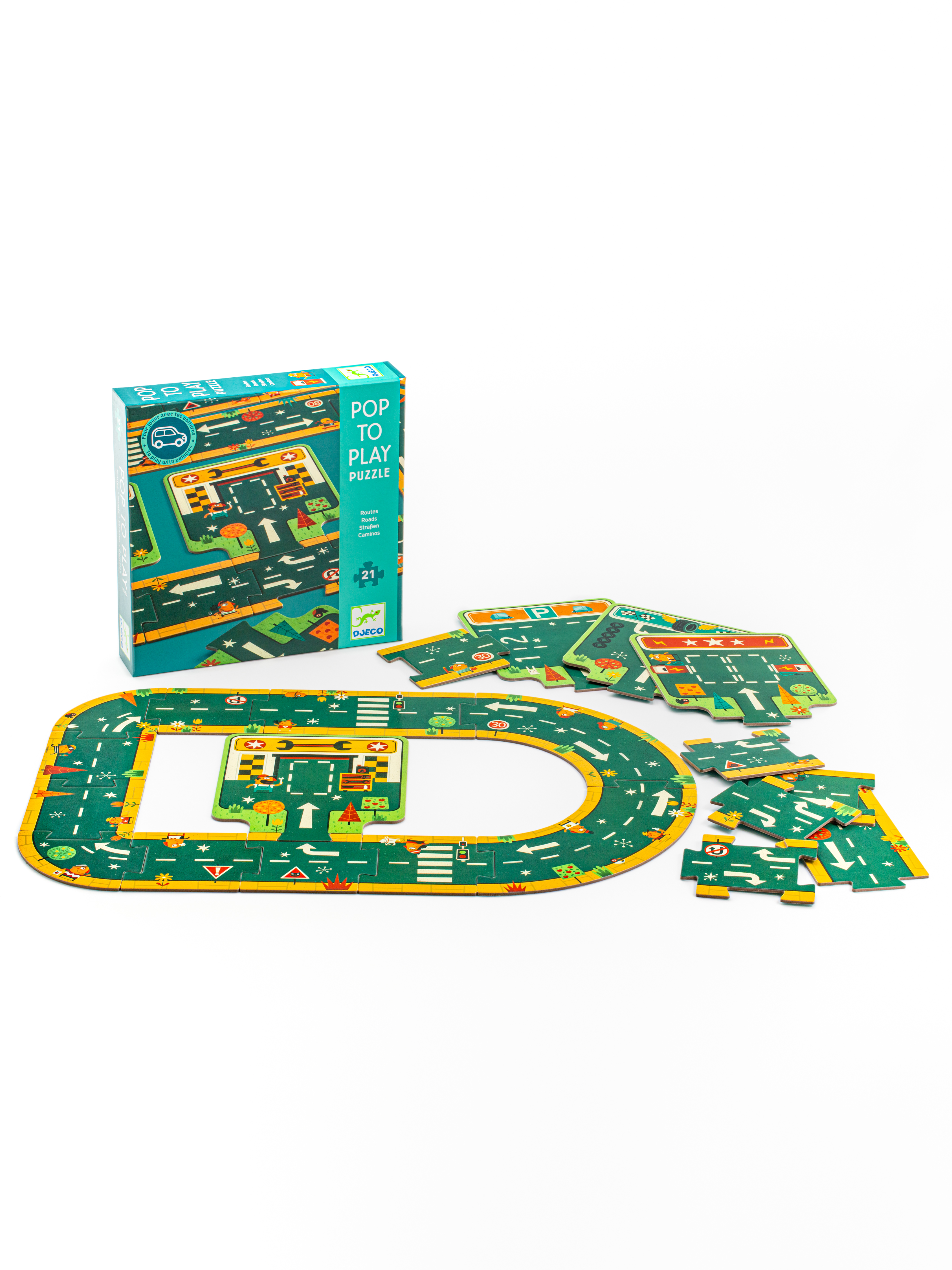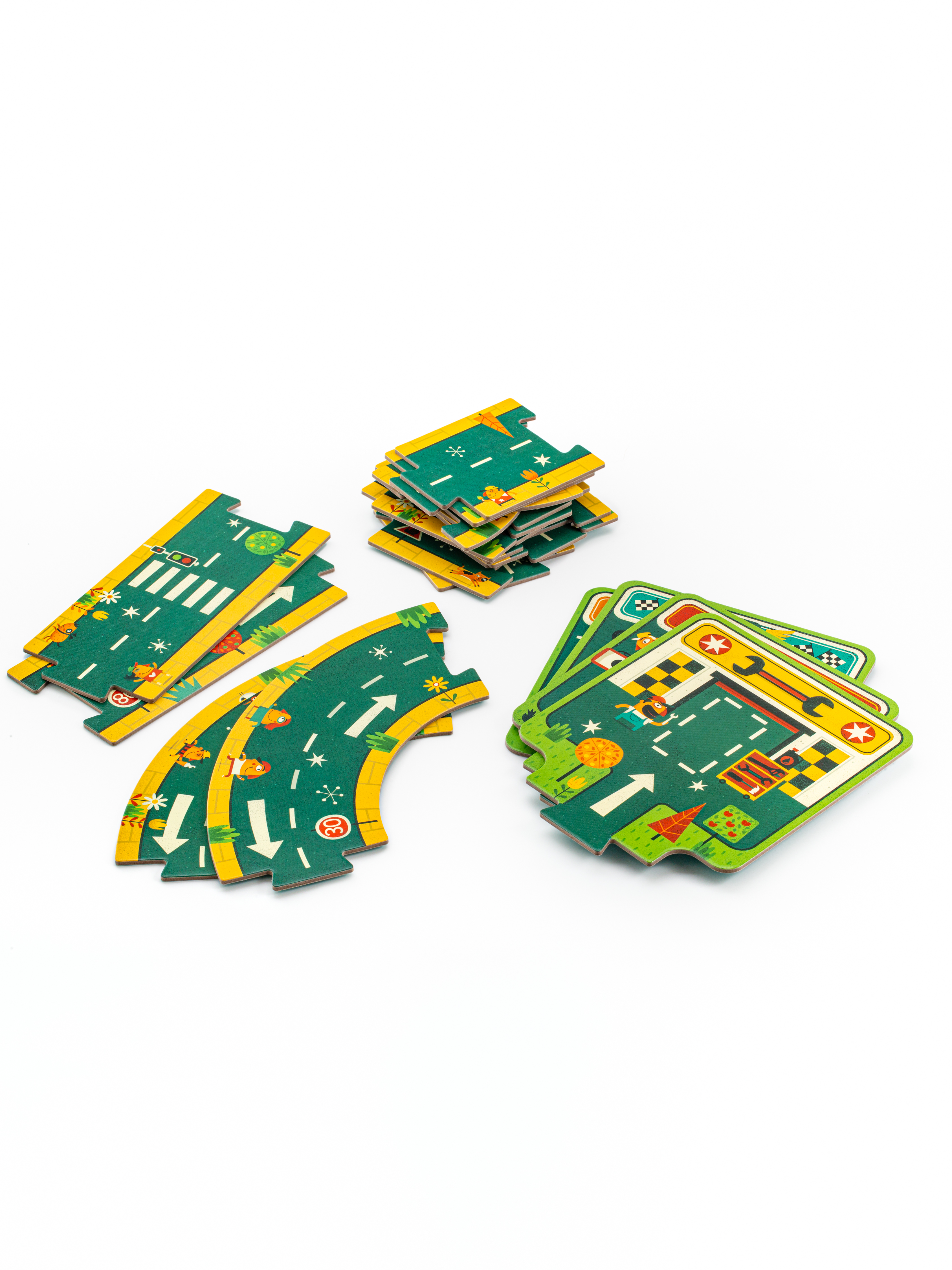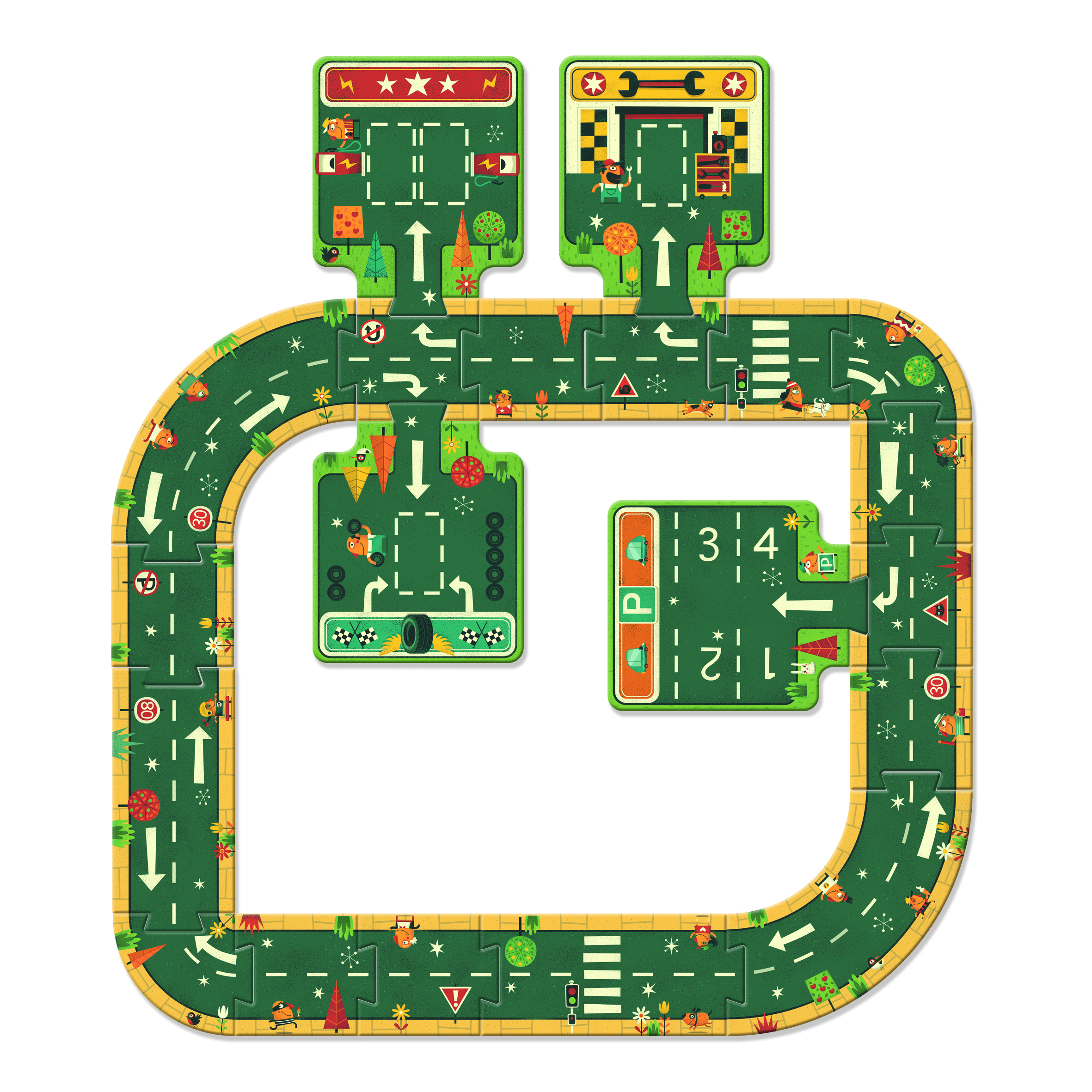 Большой пазл из 21 детали для создания различных маршрутов и игры с игрушечными машинками (в комплект не входят). Отправляемся в путь!
