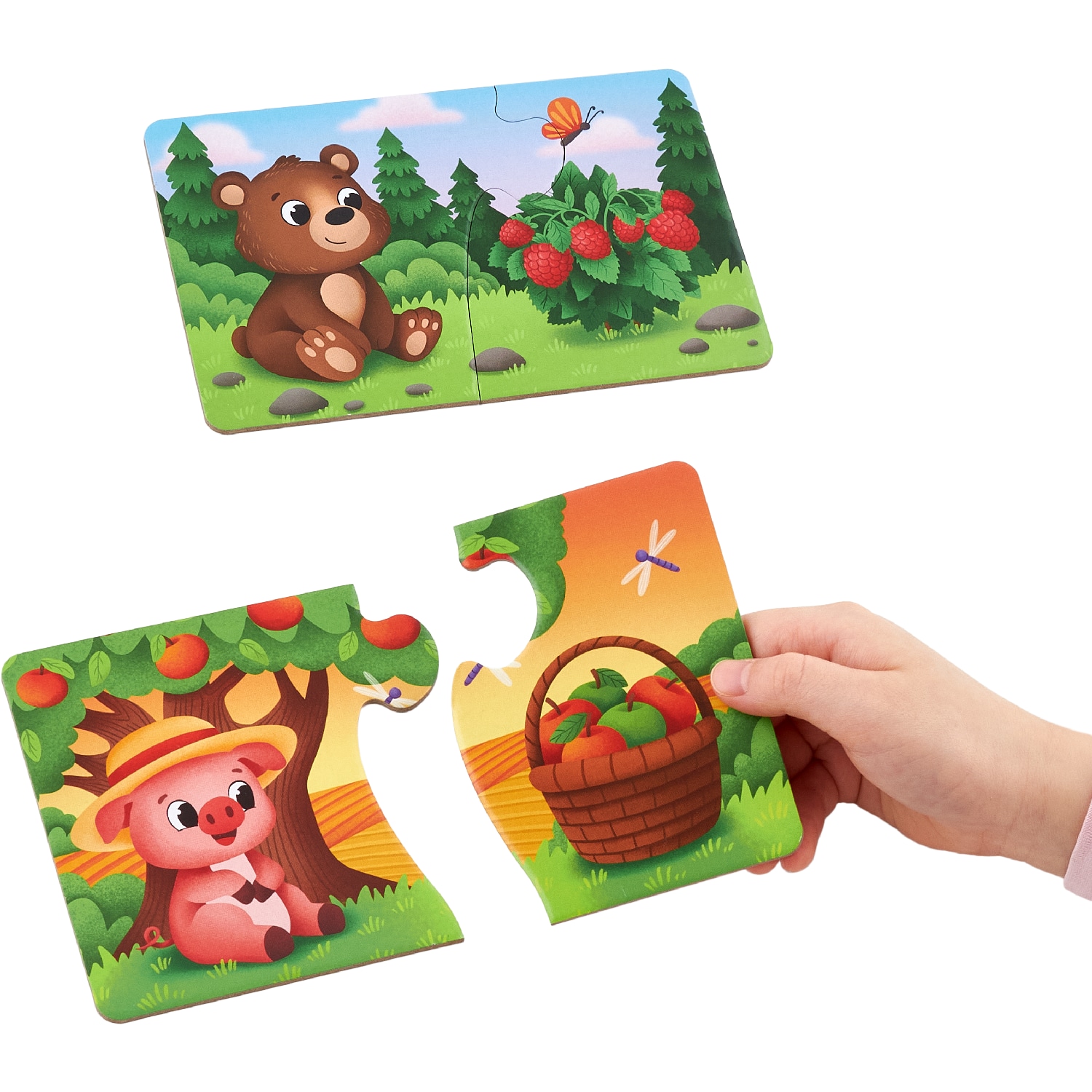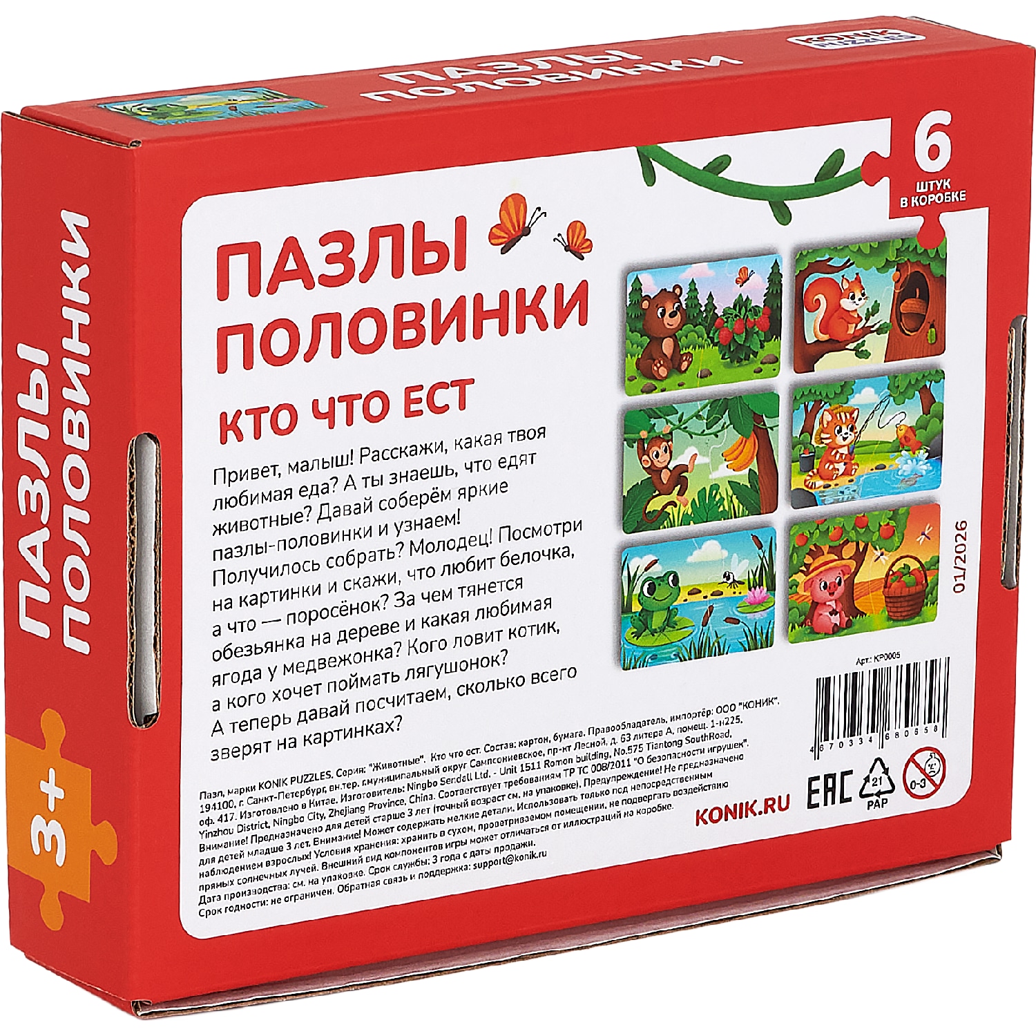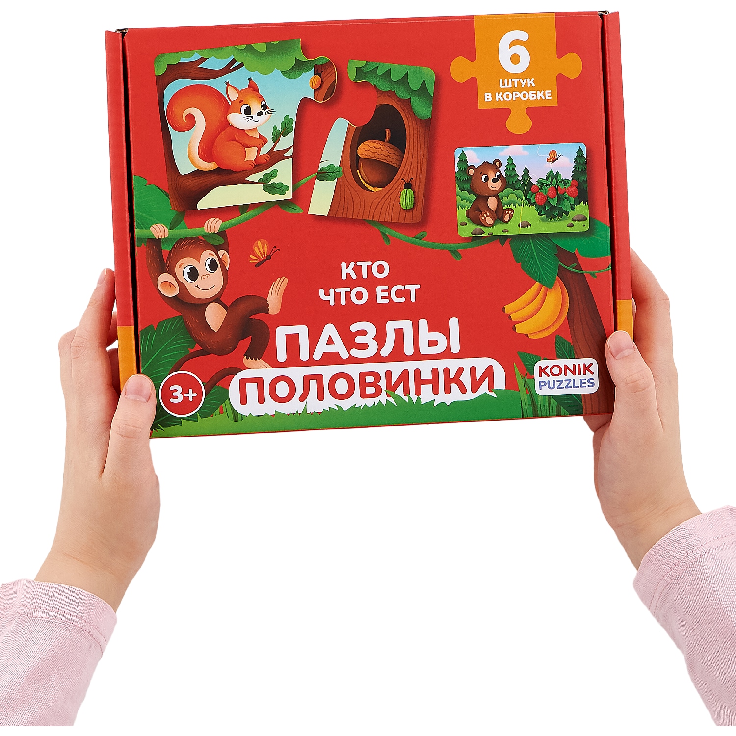 Пазлы-половинки «Кто что ест» — подарок для мальчика и девочки, сыну или дочке на день рождения или просто так. Подходят для детей от 3 лет. Яркая коробка сразу привлекает внимание — внутри puzzle выглядит как настоящий подарок. В комплекте: 12 крупных деталей (6 пар), которые удобно хранить в коробке. Крупные детали из плотного картона удобны для детских ручек — ребенок от 3 лет легко соединяет половинки. Развивающие пазлы-половинки с животными и их едой тренируют логику, память, внимание, усидчивость и способствуют развитию. Ребенок собирает головоломку, развивая пространственное мышление и координацию движений. Вся семья может присоединиться к настольной игре — совместная сборка объединяет за одним столом. Развивашки знакомят ребенка с тем, кто что ест, расширяют кругозор и помогают узнавать новое. Пазл легко взять с собой в дорогу, в гости или на дачу — детали компактно складываются в коробку. Готовые картинки можно сохранить или собрать заново. Этот пазл — полезная игра для ребенка, радость для родителей и время, проведенное всей семьей.