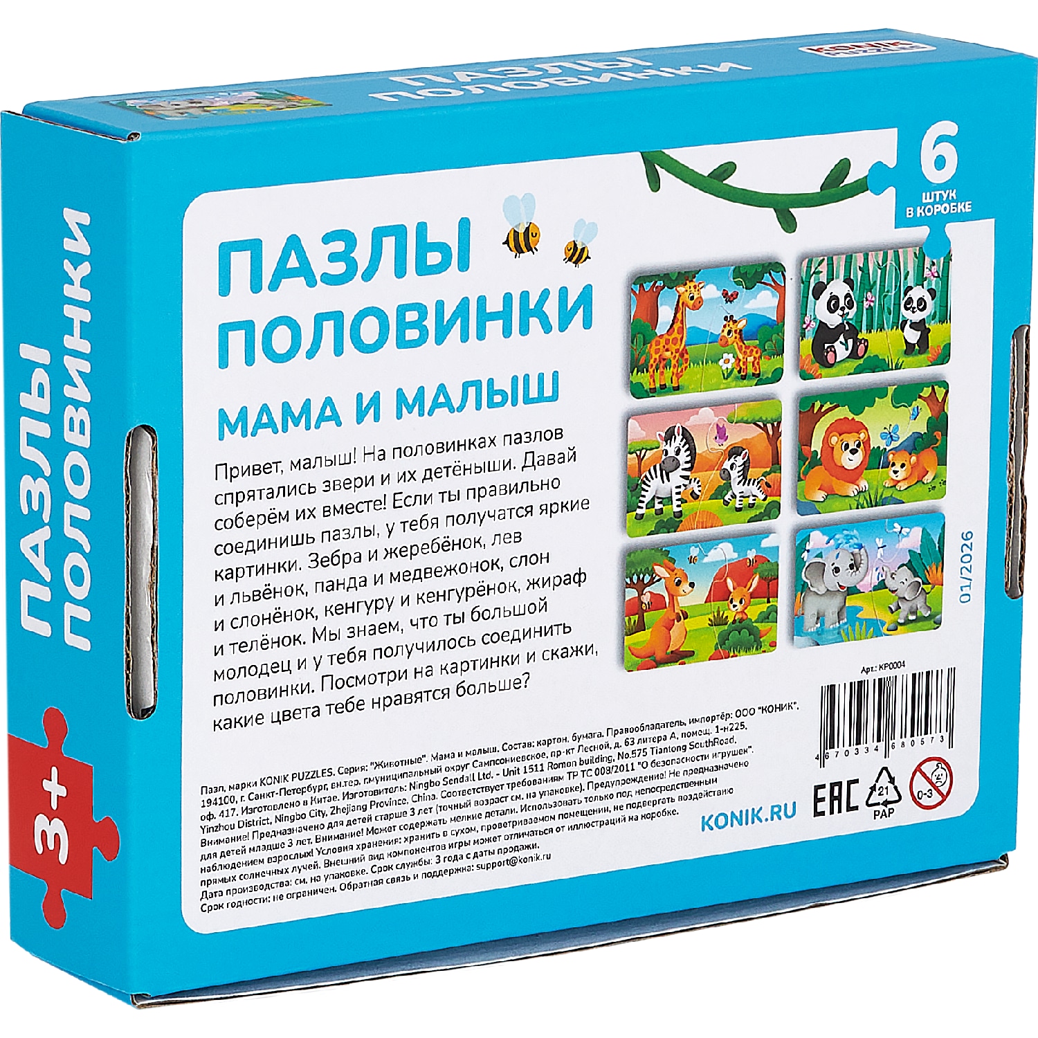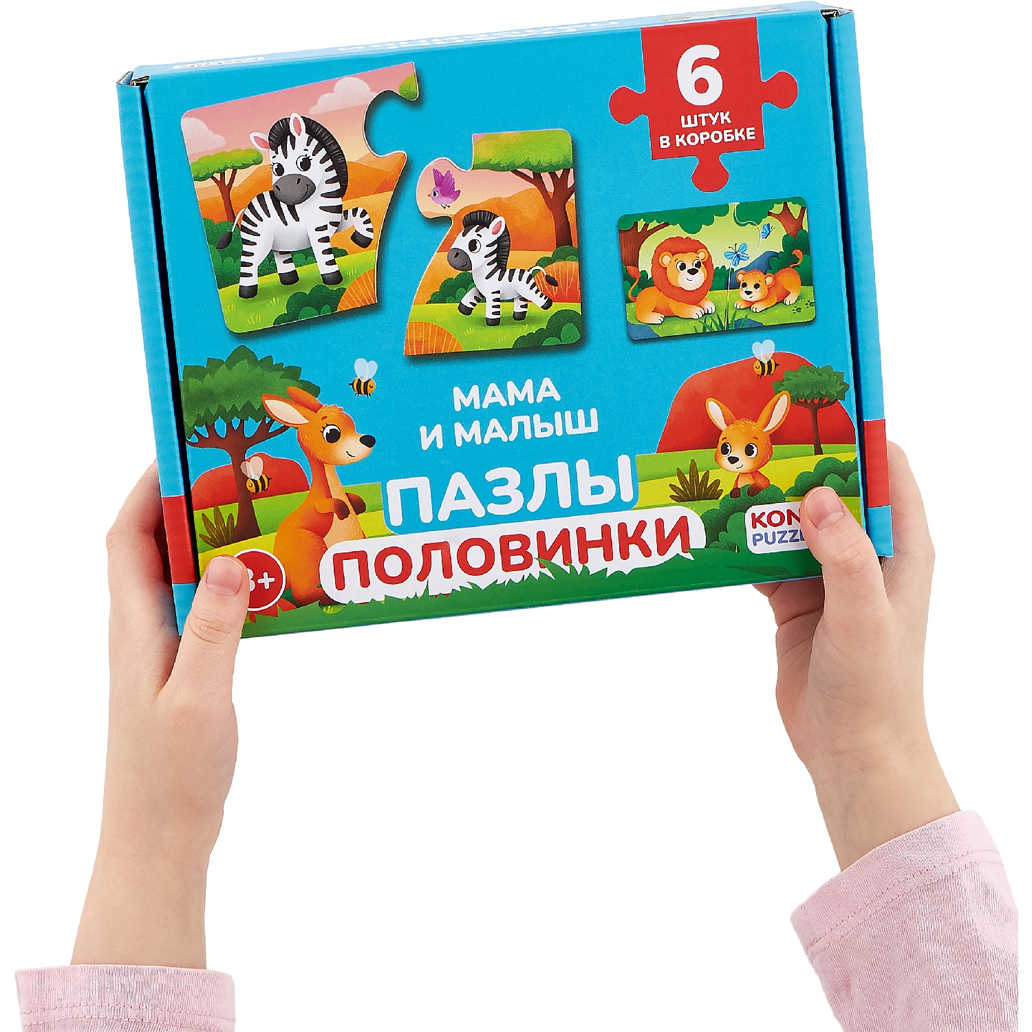 Пазлы-половинки «Мама и малыш» — подарок для мальчика и девочки, сыну или дочке на день рождения или просто так. Подходят для детей от 3 лет. Яркая коробка сразу привлекает внимание — внутри puzzle выглядит как настоящий подарок. В комплекте: 12 крупных деталей (6 пар), которые удобно хранить в коробке. Крупные детали из плотного картона удобны для детских ручек — ребенок от 3 лет легко соединяет половинки. Развивающие пазлы-половинки с животными тренируют логику, память, внимание, усидчивость и способствуют развитию. Ребенок собирает головоломку, развивая пространственное мышление и координацию движений. Вся семья может присоединиться к настольной игре — совместная сборка объединяет за одним столом. Развивашки знакомят ребенка с понятиями «мама» и «малыш», расширяют кругозор и помогают узнавать новое. Пазл легко взять с собой в дорогу, в гости или на дачу — детали компактно складываются в коробку. Готовые картинки можно сохранить или собрать заново. Этот пазл — полезная игра для ребенка, радость для родителей и время, проведенное всей семьей.