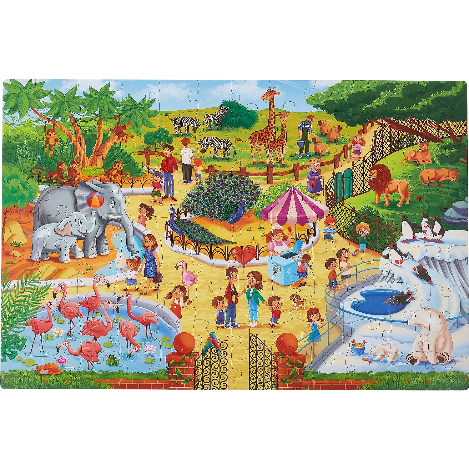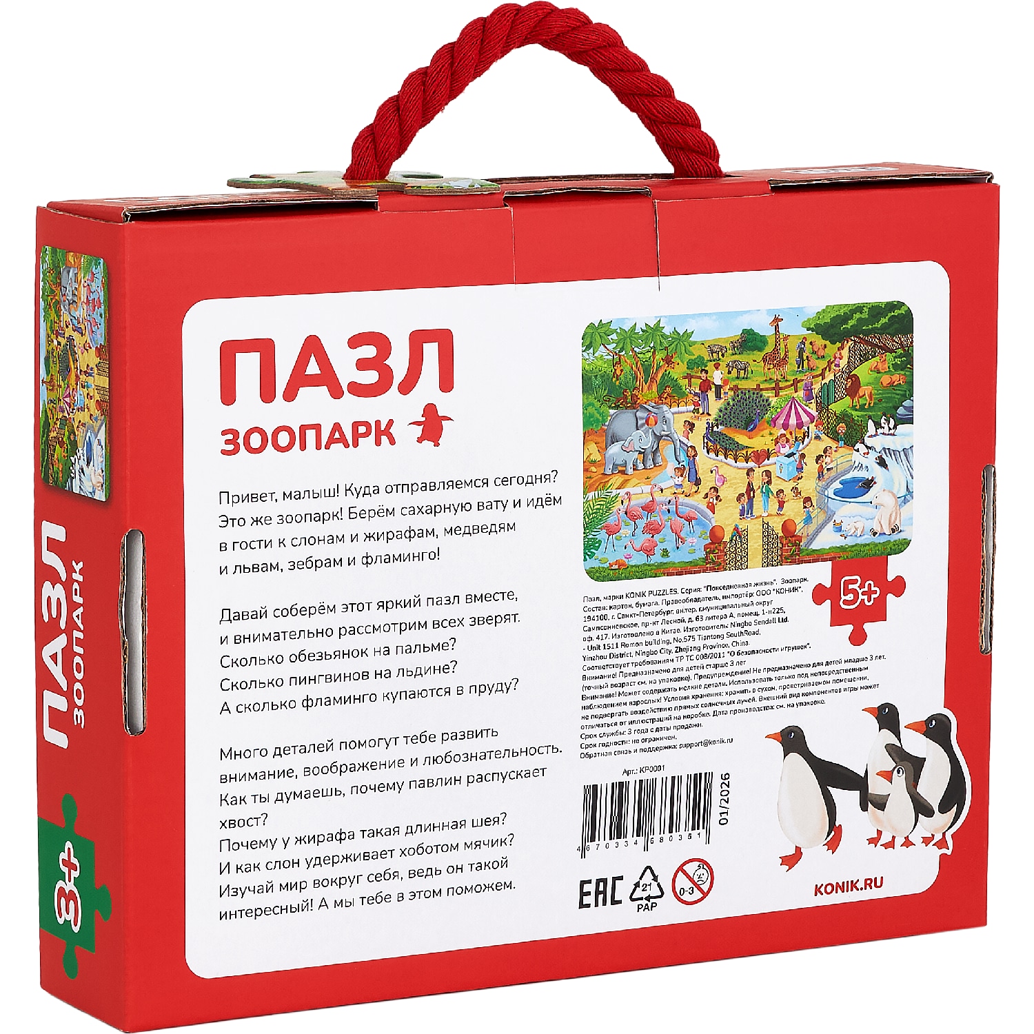 Детские пазлы «Зоопарк» — подарок для мальчика и девочки, сыну или дочке на день рождения или просто так. Подходят для детей от 5 лет. В комплекте: удобный конвертик для хранения деталей, чтобы ничего не потерялось, и памятка по сборке. Крупные детали из плотного картона удобны для маленьких ручек — ребенок легко их соединяет без помощи взрослых. Развивающие пазлы с животными тренируют логику, память, внимание, усидчивость и способствуют развитию. Ребенок собирает головоломку, развивая пространственное мышление и координацию движений. Вся семья может присоединиться к настольной игре — совместная сборка объединяет за одним столом. Развивашки знакомят ребенка с животными, расширяют кругозор и помогают узнавать новое. Пазл легко взять с собой в дорогу, в гости или на дачу — детали компактно складываются в коробку. Готовую картинку можно сохранить как украшение детской комнаты или собрать заново. Этот пазл — полезная игра для ребенка 5,6, 7 лет, радость для родителей и время, проведенное всей семьей.