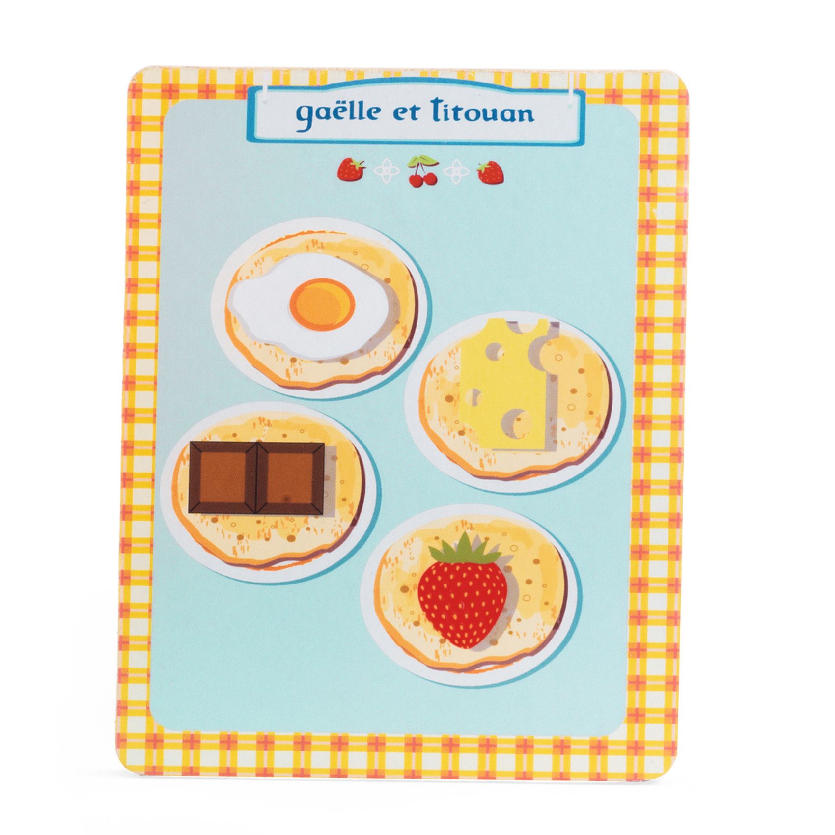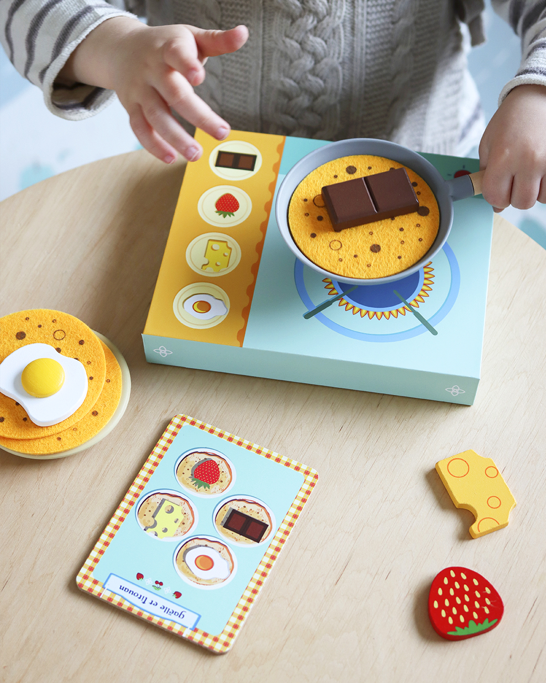 Хлопчатобумажная сумочка, красиво иллюстрированная птицами, в которой собраны деревянные аксессуары, похожие на большие: часы, телефон и губная помада.